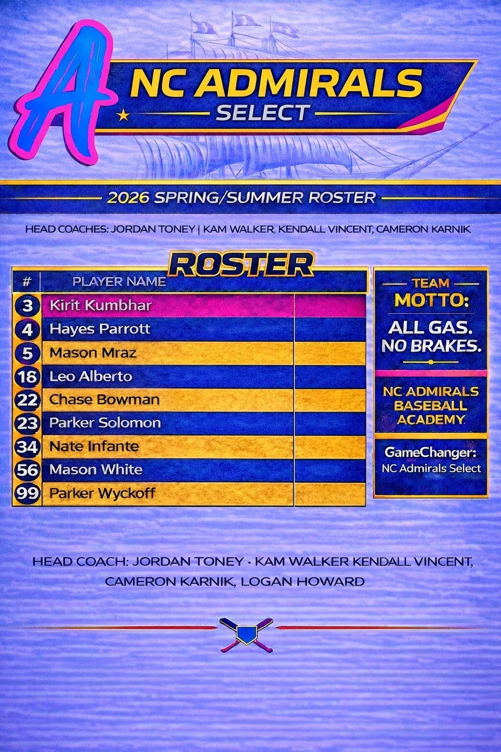 NC Admirals Baseball Academy Select Team